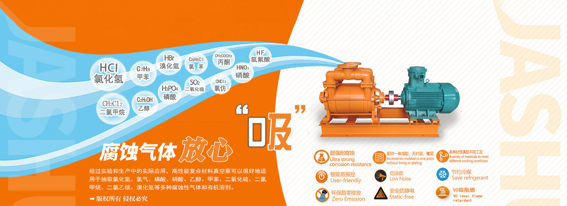 淄博華舜耐腐蝕真空泵有限公司主要生產(chǎn)各種型號和規(guī)格的水噴射泵耐酸泵等產(chǎn)品,價格優(yōu)惠,廠家直銷,原理簡單,是一家集科研開發(fā)、設(shè)計咨詢、生產(chǎn)、銷售、服務(wù)于一體,利用新型高性能復(fù)合材料,專業(yè)生產(chǎn)耐腐蝕液環(huán)真空泵的國家高新技術(shù)企業(yè), 坐落于“中國泵業(yè)名城”---山東省淄博市博山區(qū),公司通過了ISO9001質(zhì)量體系認證。公司獨立研發(fā)的具有多項自主知識產(chǎn)權(quán)的專利產(chǎn)品-耐腐蝕系列水環(huán)式真空泵,通過了省級科技成果鑒定,處于“國際先進水平”。 產(chǎn)品過流部件采用三大系列高性能復(fù)合材料(HS-V130、HS-V110、HS-V80)一體成型,耐腐蝕范圍廣、無襯層不脫落、節(jié)能效率高、運行可靠、環(huán)保節(jié)水、 體積小、重量輕、使用壽命長等特點。